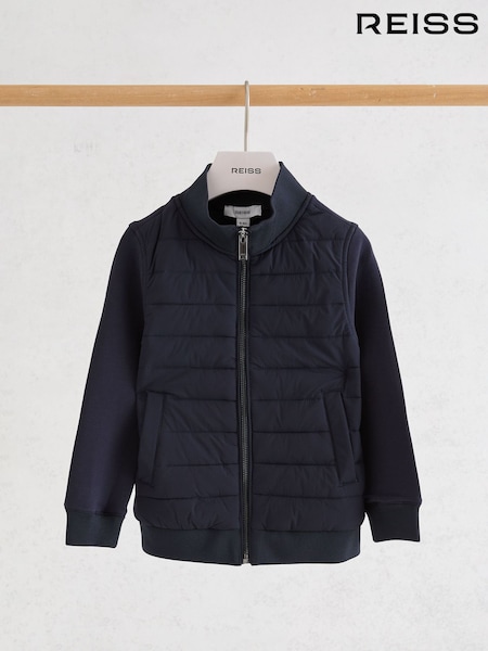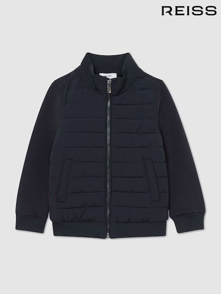 Reiss Navy Flintoff Quilted Hybrid Zip-Front Jacket
