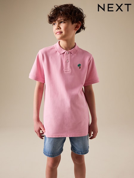Dusky Pink Palm Embroidered Knitted Polo Shirt (3-16yrs)