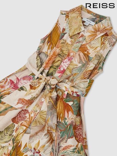 Reiss Neutral Morgan 13-14 yrs Floral-Print Belted Shirt Dress