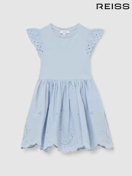 Reiss Pale Blue Carianna 3-9 yrs Jersey Broderie-Anglaise Mix Dress