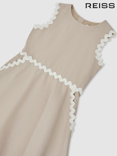 Reiss Neutral Blake 13-14 yrs Linen-Blend Ric-Rac Trim Dress