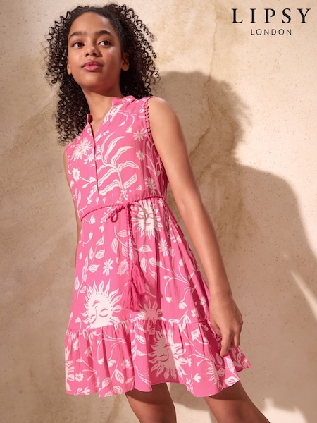 Lipsy White Floral Print Crinkle Jersey Frill Dress (5-16yrs)