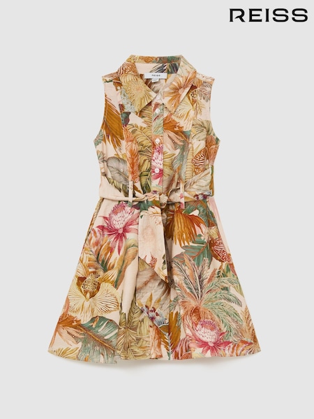Reiss Neutral Morgan 13-14 yrs Floral-Print Belted Shirt Dress