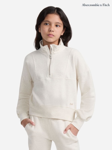 Abercrombie & Fitch White Essential Quarter Zip Pullover Sweatshirt