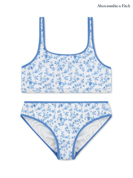 Abercrombie & Fitch White Floral Print Scoop Neck Bikini