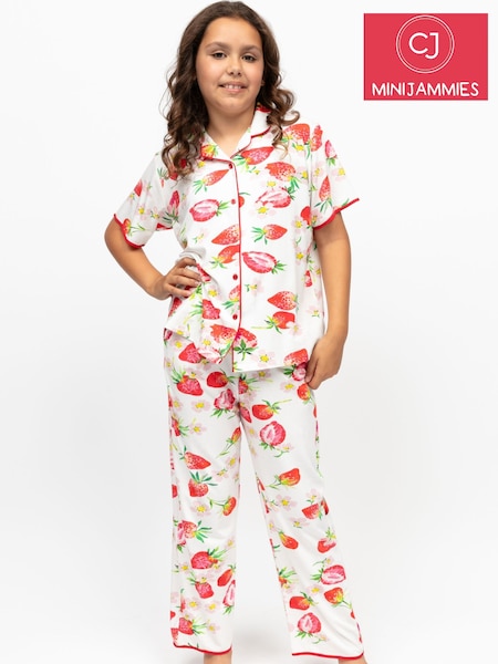 Cyberjammies Red Strawberry Printed Jersey Short Seeve Pyjamas Set