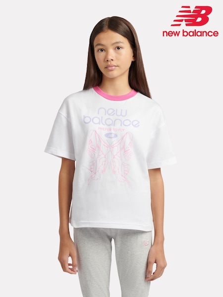 New Balance White Prefer To Fly Butterfly Graphic T-Shirt