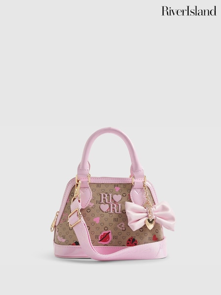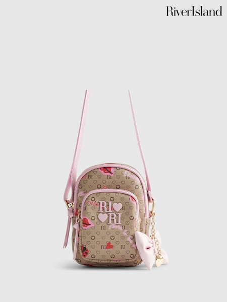 River Island Pink Mini Monogram Cross-Body Bag