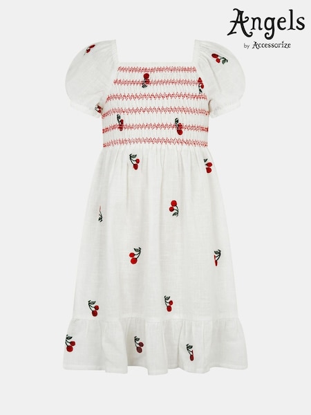 Angels By Accessorize White Cherry Embroidered Cotton Dress