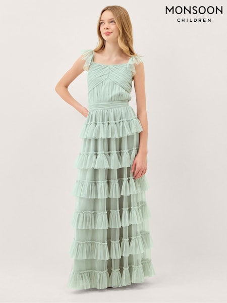 Monsoon Green Faith Tulle Ruffle Prom Dress