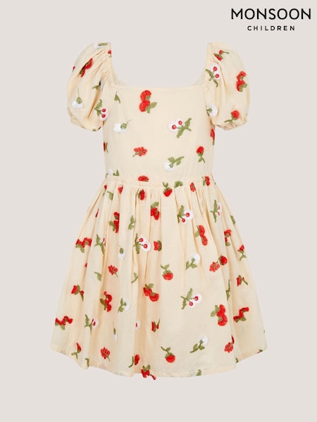 Monsoon Cream Puff Sleeve Floral Embroidered Dress