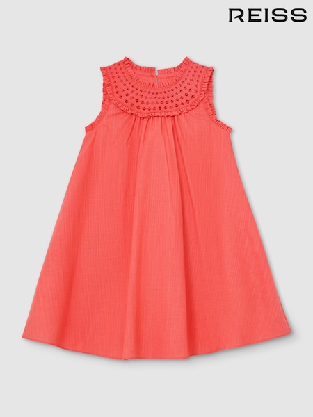 Reiss Coral Pink Larna 3-9 yrs Cotton Cutwork-Embroidery Swing Dress