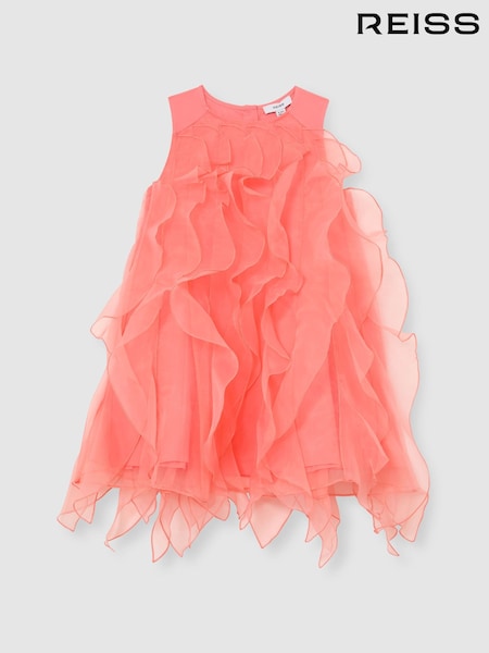 Reiss Coral Pink Ellenora 13-14 yrs Ruffle-Detail Organza Dress