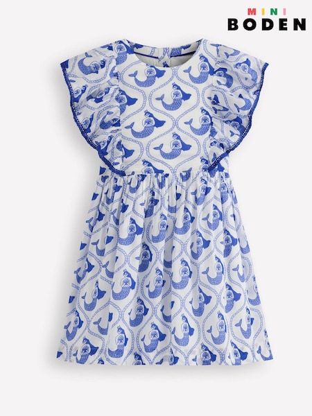 JoJo Maman Bébé Blue Ditsy Floral Ditsy Floral Ruffle Sleeve Dress