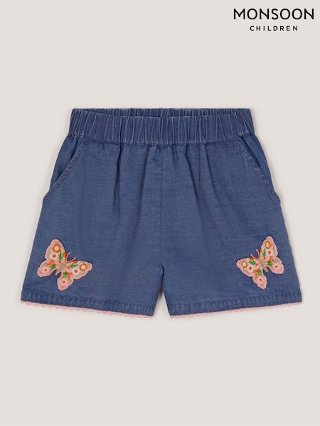 Monsoon Blue Butterfly Embroidered Pull On Shorts