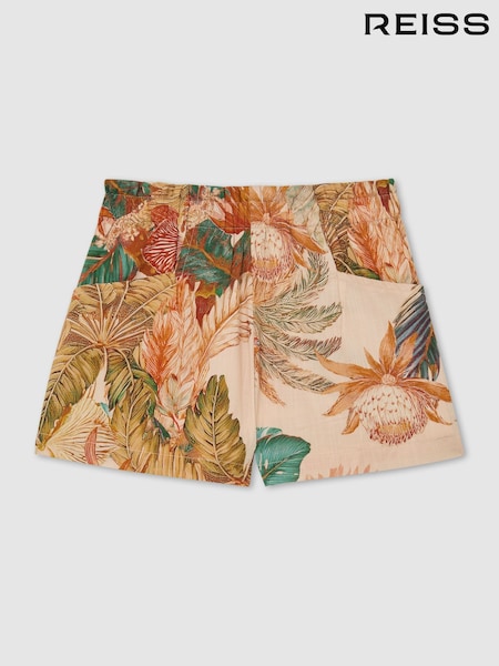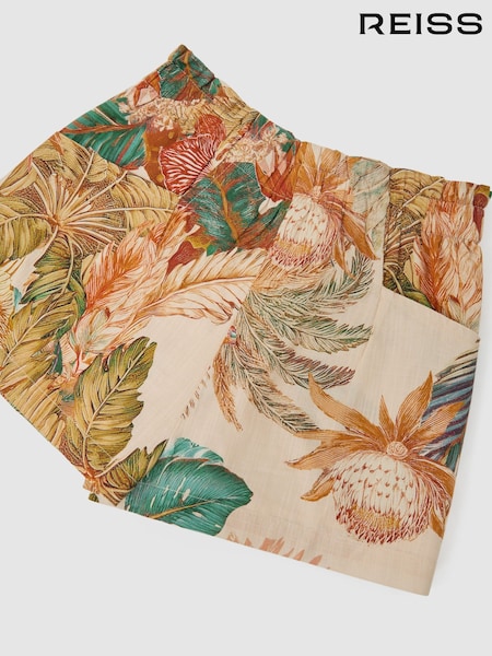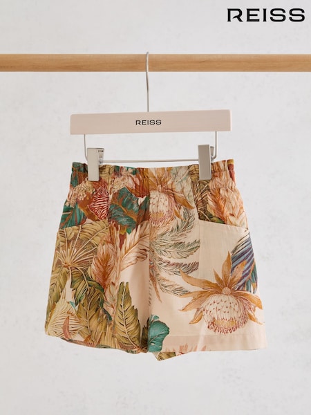 Reiss Neutral Violeta 13-14 yrs Cotton Tropical-Print Tie-Waist Shorts
