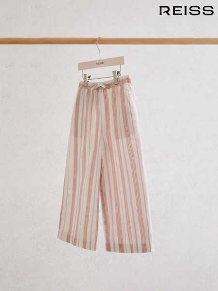 Reiss Pink Cleo 9-13 yrs Cotton-Linen Striped Trousers