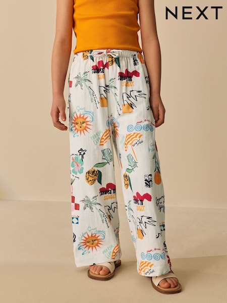 Cream Holiday Pullon Wide Leg Trousers (3-16yrs)