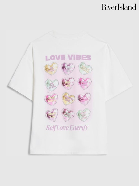 River Island Pink Girls Frill Sleeve Box Graphic Print T-Shirt