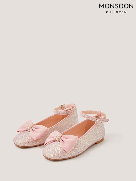 Monsoon Pink Bow Glitter Ballet Flats