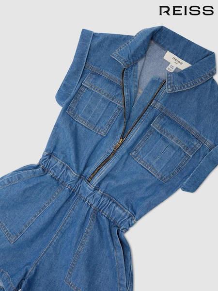 Reiss Denim Blue Jamie 9-13 yrs Denim Zip-Through Playsuit