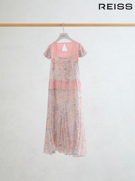 Reiss Pink Natasha Floral-Print Pleated Jumpsuit