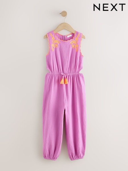 Monsoon Purple Embroidered Ruffle Tassel Jumpsuit