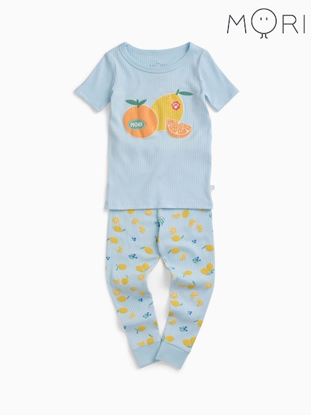 MORI Blue Lemon Lullaby Supersoft Ribbed Short Sleeve Pyjamas