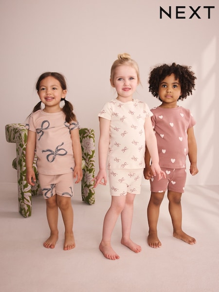 Pink Bow and Heart Print Short Pyjamas 3 Pack (9mths-12yrs)