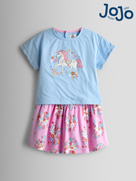 JoJo Maman Bébé Light Blue Unicorn Frill Sleeve Top & Short Set