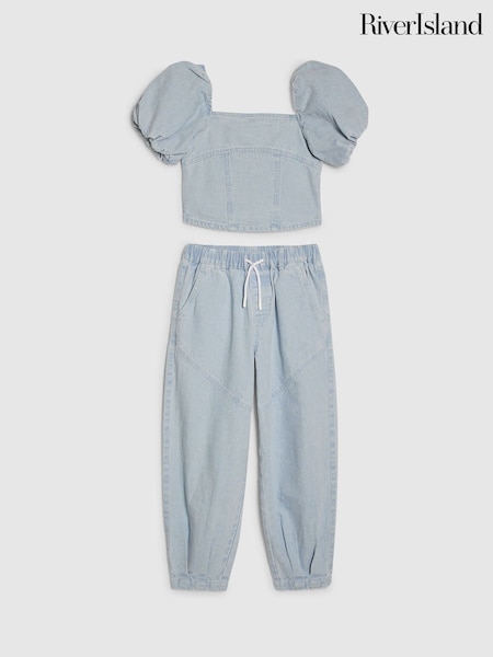 River Island White Puff Sleeve Top & Denim Jeans Set