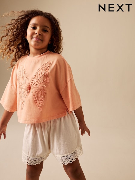 Orange/Cream Butterfly T-Shirt and Textured Shorts Set (3-16yrs)