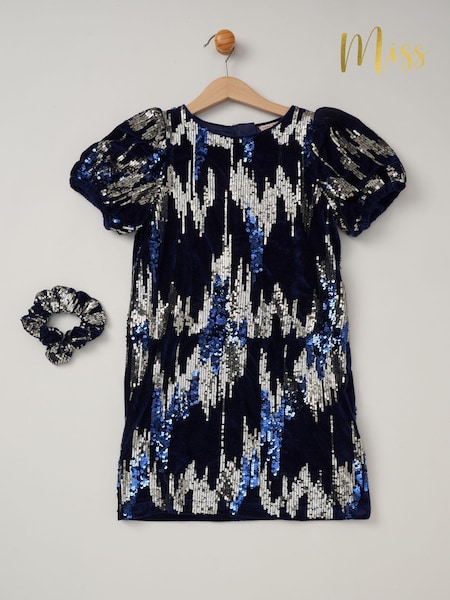 Miss Blue Jacquard Star Jacket And Sequin Dress Set