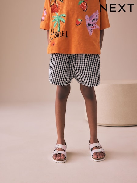 Black/ White Gingham Check Pullon Shorts (3-16yrs)