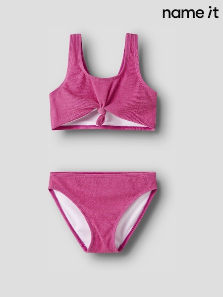 Name It Pink Glitter Front Tie Top Bikini