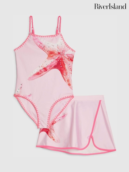 River Island Pink Strawberry Bow Tutu Swimsuit