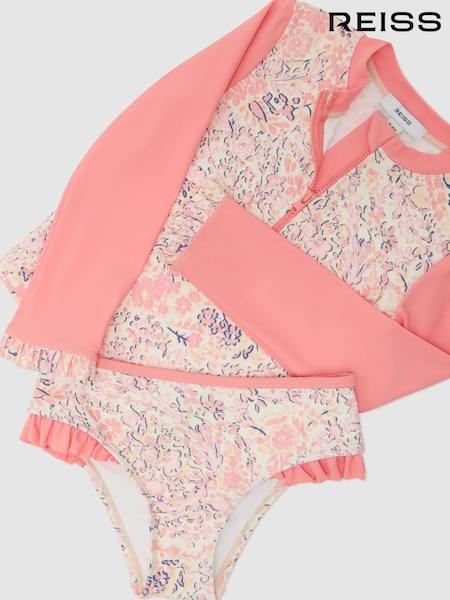 Reiss Coral Pink Nola 3-9 yrs Printed Rash Vest Bikini Set