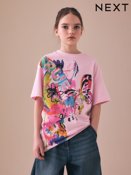Pink Graffiti Oversized Graphic Print T-Shirt (3-16yrs)
