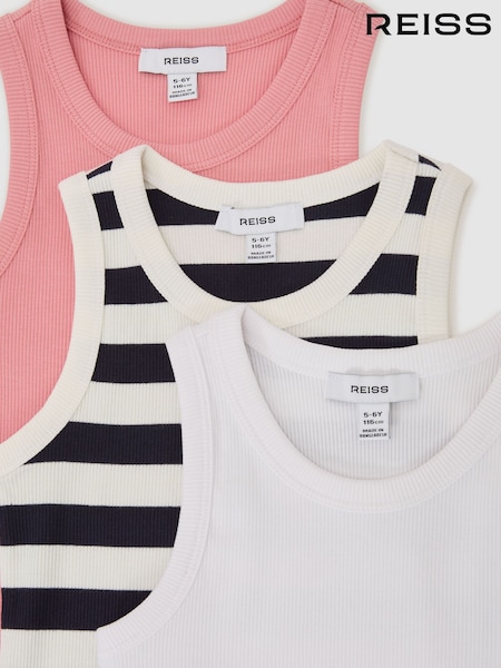 Reiss Multi Violet 3 Pack Stretch-Cotton Ribbed Vests