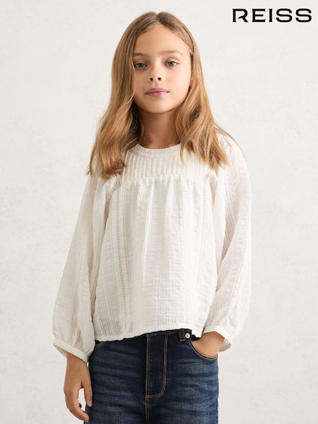 Reiss White Elle Cheesecloth Textured Blouse