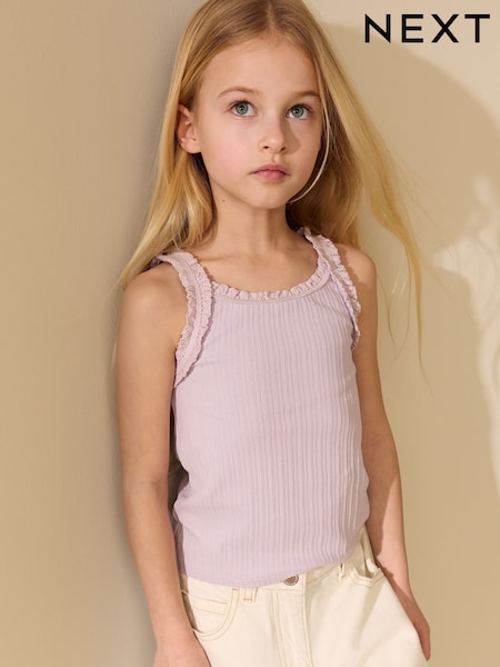 Lilac Purple Frill Ribbed Vest (3-16yrs)