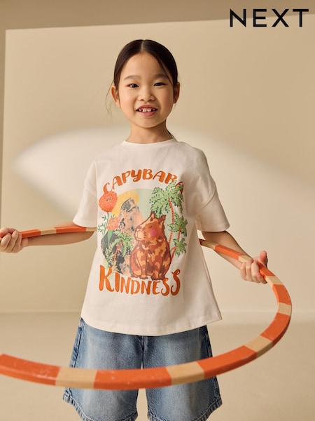 Cream Capybara Oversized Graphic Print T-Shirt (3-16yrs)