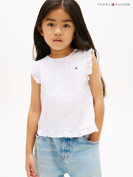 Tommy Hilfiger White Crossover Back Seersucker Sleeveless Top