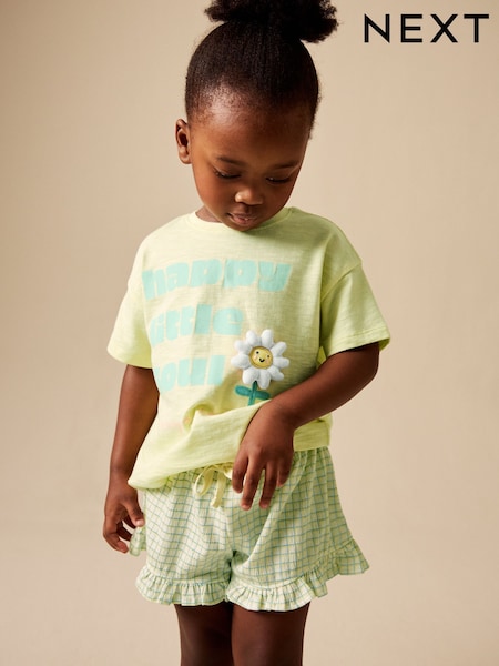 Lime Green Flower Short Sleeve Top and Shorts Set (3mths-7yrs)