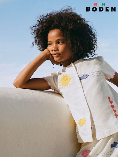 Boden White Relaxed Embroidered T-Shirt