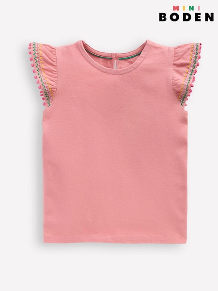Boden Pink Flutter Sleeve Trim Top