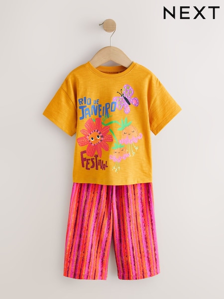 Ochre Yellow Short Sleeve T-Shirt and Wide Leg Trousers Set (3mths-7yrs)