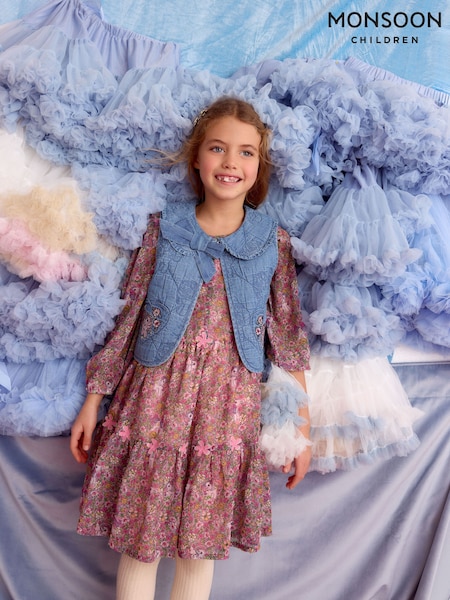Monsoon Blue My Little Pony Chambray Quilted Waistcoat
