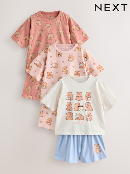 Pink/Choc Capybara Print Short Pyjamas 3 Pack (3-16yrs)