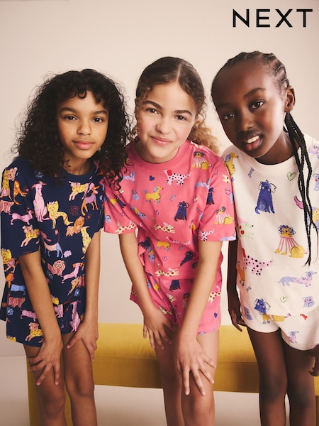 Blue/Yellow Pets Print Short Pyjamas 3 Pack (3-16yrs)